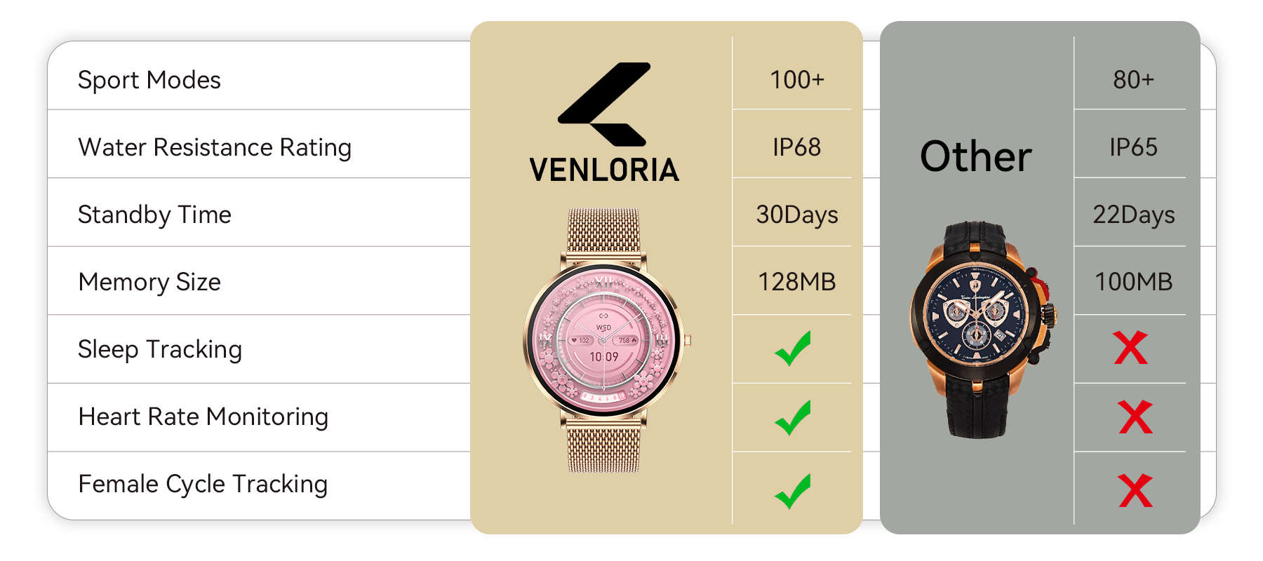 The Venloria Smart Watch was her answer. It is an elegant companion with an ultra-slim design and comprehensive health monitoring. The product was built so she would never have to compromise again.
